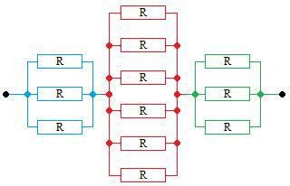 Detta summeras till resistansen Rtot=56RR_{tot}=\frac{5}{6}R.