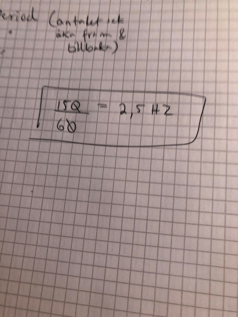 Eftersom det är 150 varv/min tog jag 150/60 och antar det blir frekvensen då varven är antalet svängningar per minut?