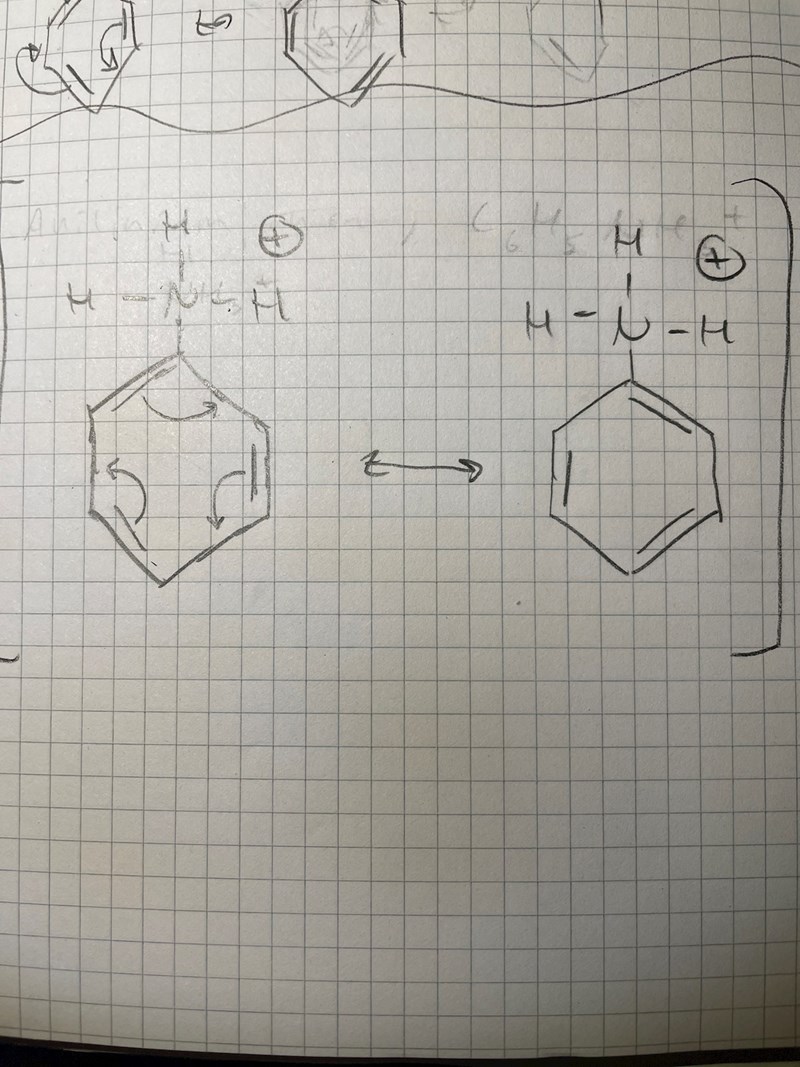 Du har helt rätt i att det finns resonansstrukturer för bensenringen, men frågan var om aniliniumjonen är resonansstabiliserad på samma sätt som bensylkatjonen, d v s med resonansstrukturer med dubbelbindning till heteroatomen.