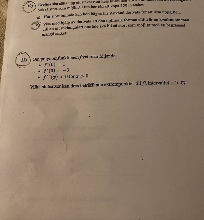"Vilka slutsatser kan dras beträffande extrempunkter till i intervallet x > 0?"