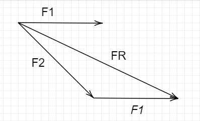 2. Rita en kraftlinje FR från starten av F2 till slutet av F1. Detta är resultantkraften:
