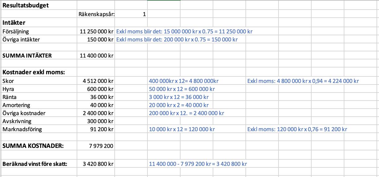 Du har blivit anställd för att hjälpa ett företag med sitt budgetarbete. Företaget arbetar med att köpa in en exklusiv skomodell från Asien och säljer den sedan vidare i Sverige. Upprätta en resultatbudget för år 2023 samt en likviditetsbudget för februari 2023 utifrån punkterna nedan. Alla summor är exklusive moms om inget annat nämns.