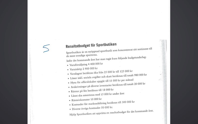 Varulagret är en omsättningstillgång, så det syns inte i en resultatrapport. Amortering och ränta är olika saker. Gör om hyran till årsbasis. Rätta en del skrivfel.