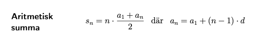 Nu är summaformeln också giltig.