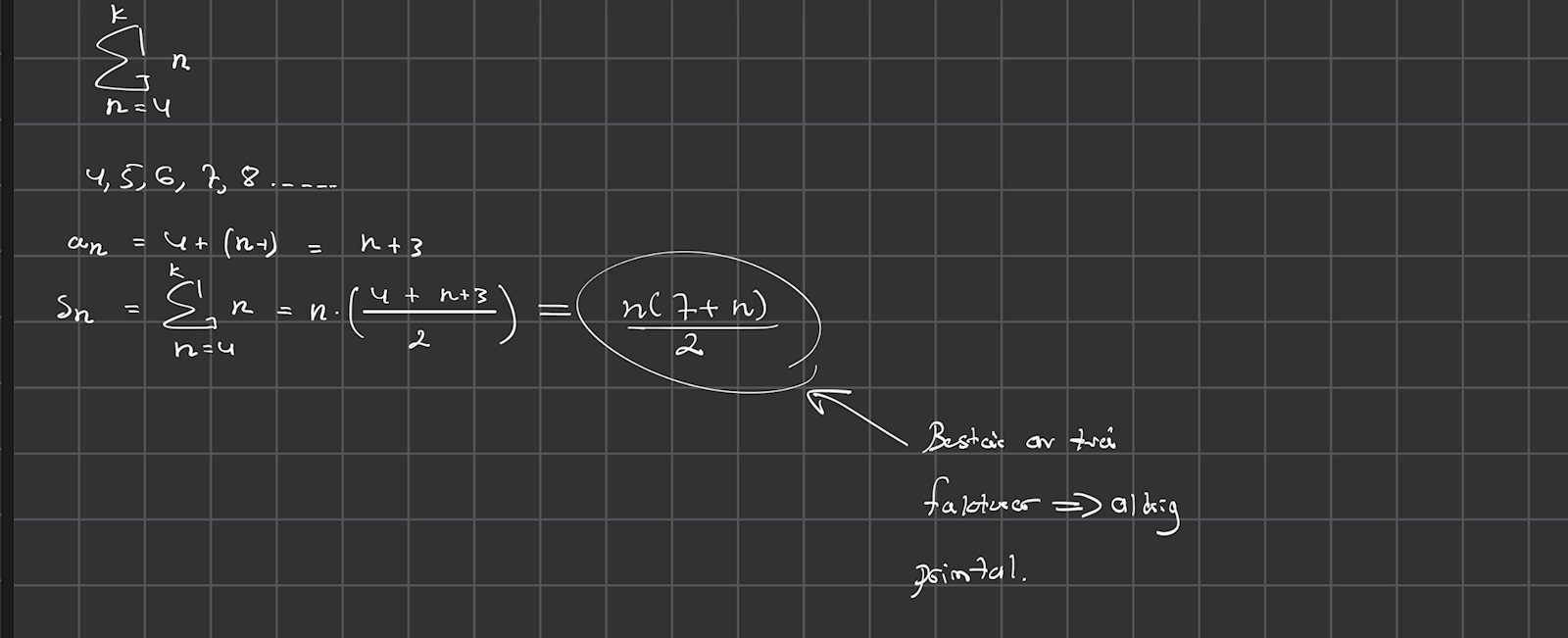 Denna summa är aritmetisk, vad blir den slutna formen för den?