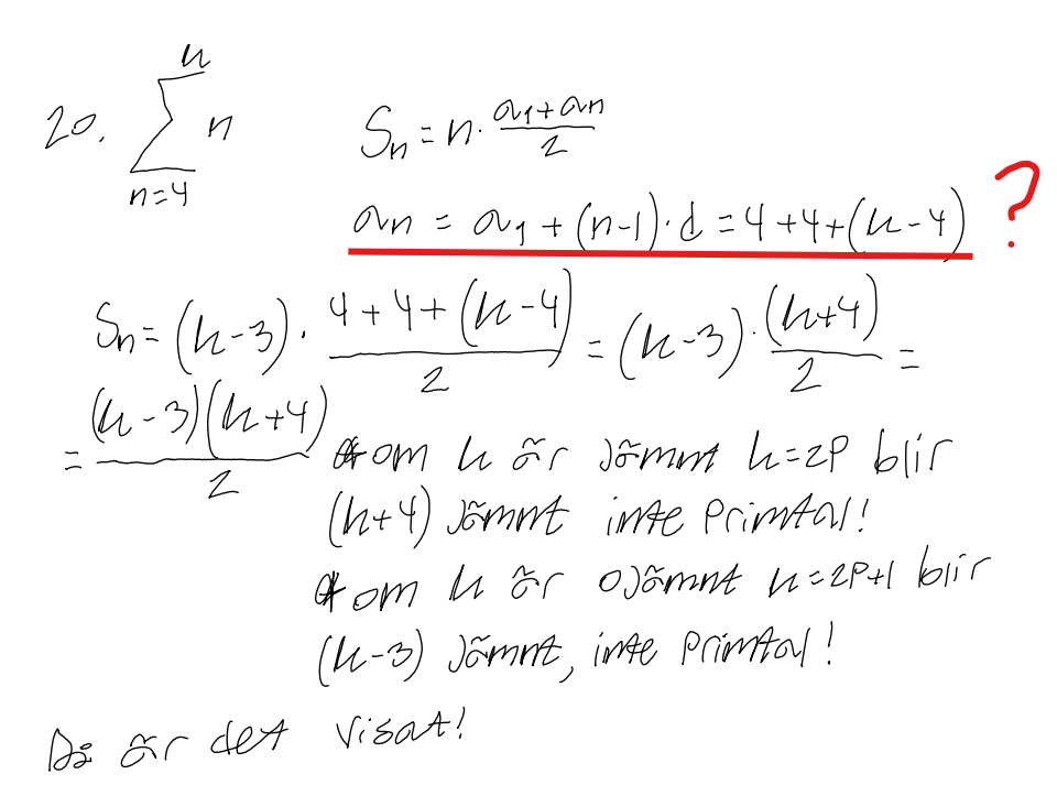Men hur kommer ni fram med denna formel för an? i vårt formelblad står följande för aritmetisk talföljd: