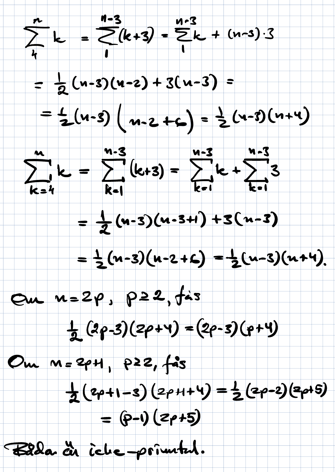 Härifrån kan vi använda formeln för summan av de första heltalen. Min tankegång är att