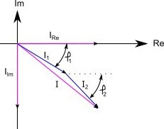 Rita ett visardiagram för strömmarna. Addera vektorerna för motorströmmarna:
