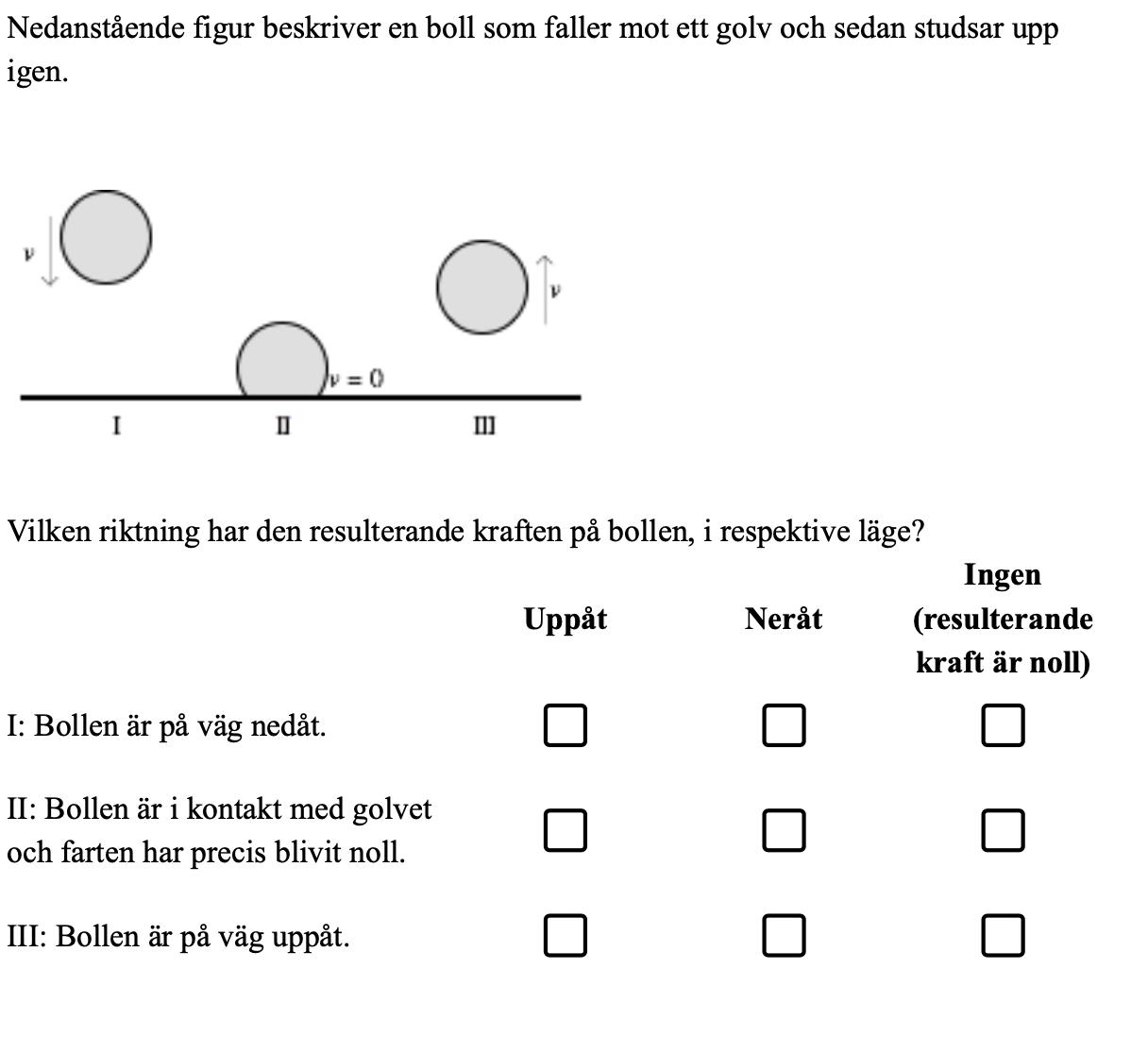 b: ...uppåt? Men om farten är noll (som uppgiften anger) befinner sig ju bollen i vila, borde inte den resulterande kraften vara 0 då. Vad är skillnaden mellan detta fall respektive tex en låda som befinner sig i vila på marken...