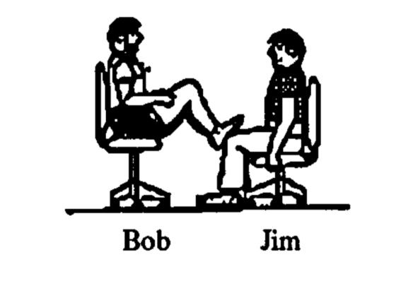 Ta två personer som sitter på stolar så som i figuren nedan och där Bob trycker med fötterna på Jims knän