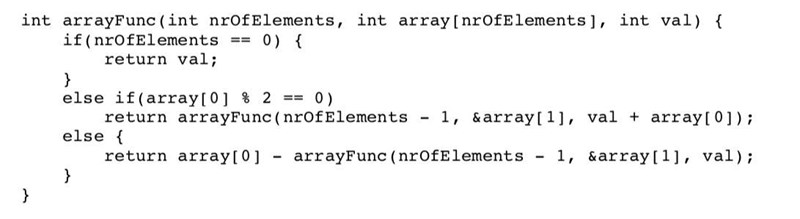 return array[0] - arrayFunc(nrOfElements - 1, &array[1], val);