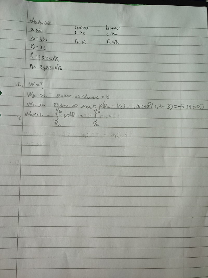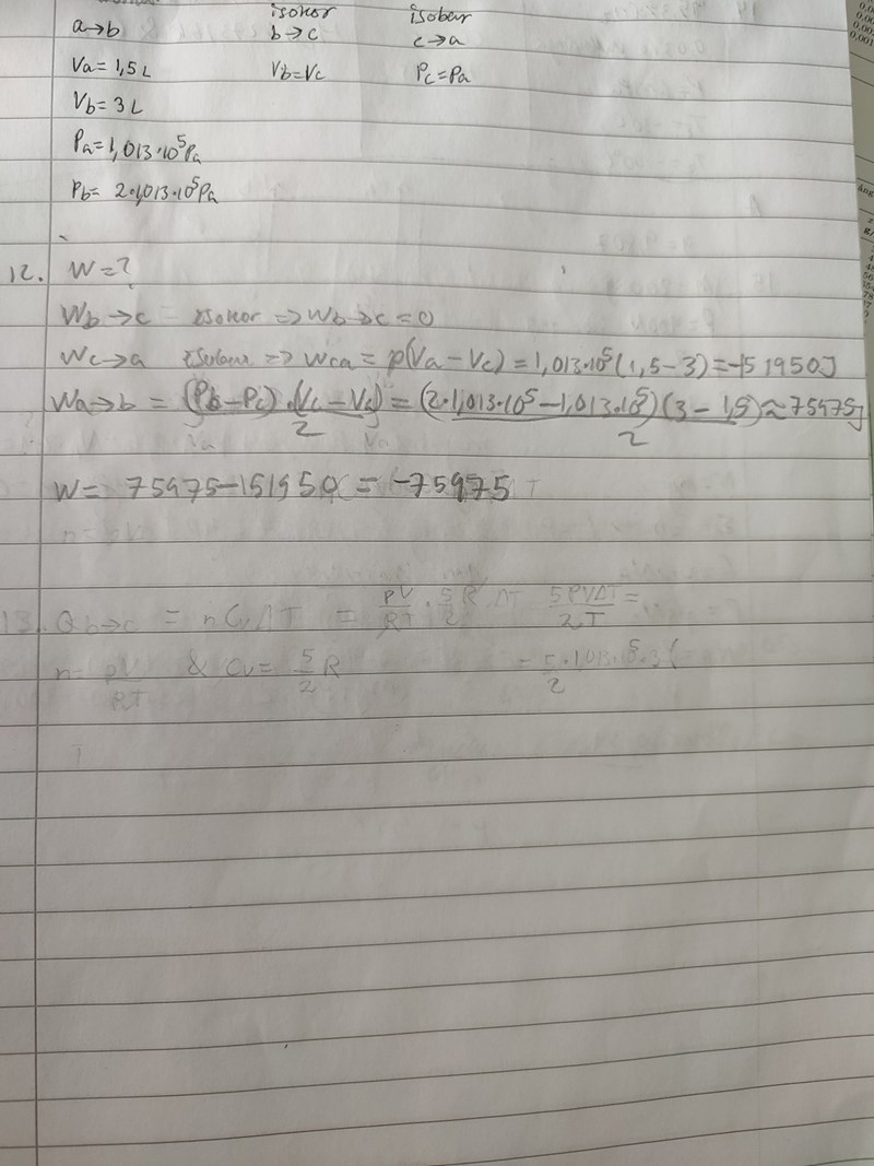 Ah okej! Vet inte jag måste göra något till fel:( för jag får -75975 J som svar när jag tar Wc->a + Wa->b,.vet dock inte var det blir fel?