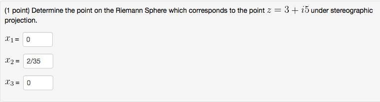 Fråga:"Determine the point on the Riemann Sphere which corresponds z=u+iv to the point under stereographic projection."