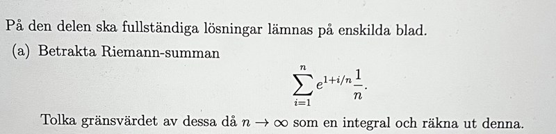 Om du skulle göra en Riemannsumma för Int(f(x)) mellan 0 och 1 där f(x) =e1+1/x med t ex 5 st delintervall. Hur skulle den se ut?