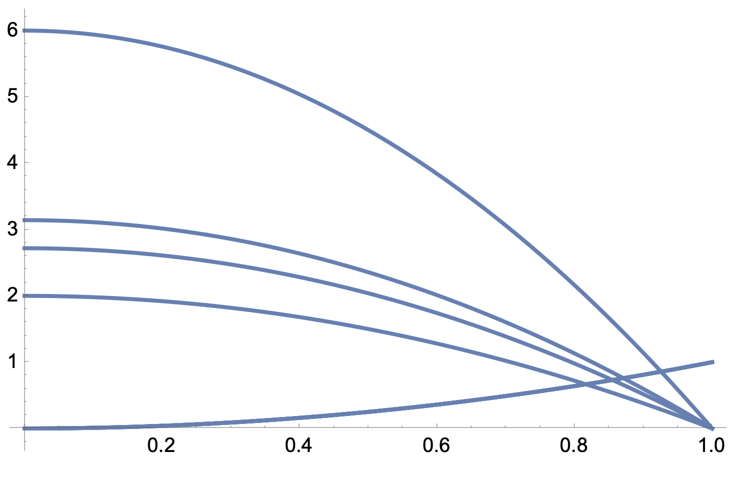 Skärningspunkten mellan den understa grafen och de övriga anger vårt p-värde. Du kan avläsa k-värdet på y-axeln då k(1-p^2) är k för p=0.
