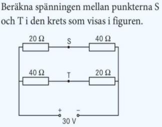 Om man går från pluspolen till T så blir det U2=40*0,5=20V     VT=30-20=10V, samma sak från pluspol till punkten S =>VS=20V=△V=20-10=10V
