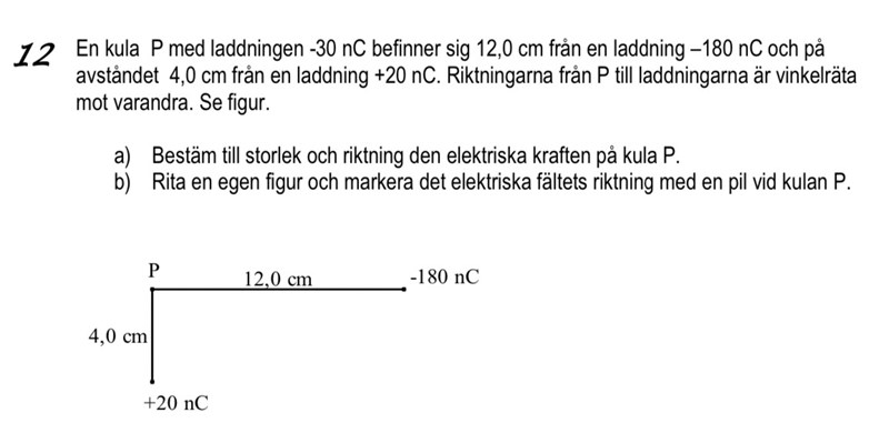 Magnus O skrev:Du ska nog bara rita en vektor som motsvarar kraften i uppgift a. Tänk bara på att fältet visar kraften på en positiv laddning.