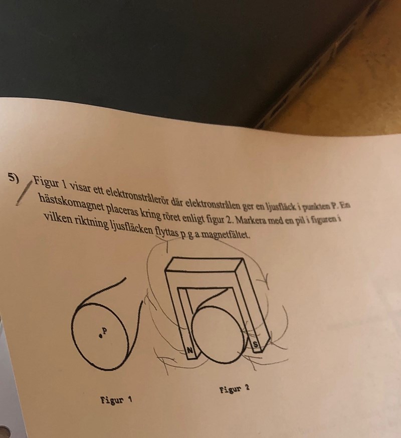 Elektroner som rör sig utgör en ström. Om strömmen hade gått genom en ledare så skulle ledaren ha påverkats av en kraft. Känns det bekant? Samma kraft påverkar elektronerna så att de ändrar riktning och lyser upp en annan punkt. Hur är det med strömriktning - hur definieras den? Hjälper det något?