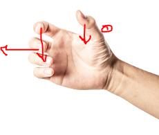 Tänk på att det ska vara 90° vinkel mellan fingrarnas riktningar.