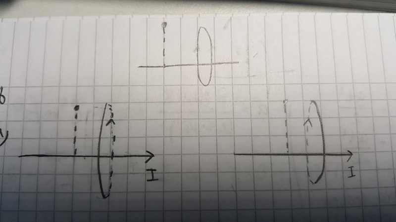 Laguna skrev:Jag tolkar ritningen som att det streckade är det bakre, alltså bakom I-axeln. Är det så? I så fall får jag till att vi tittar på samma cirkel, men lite från höger och lite från höger, respektive.