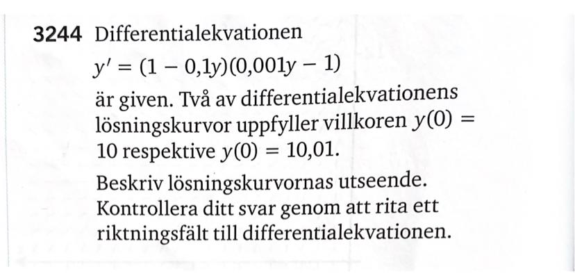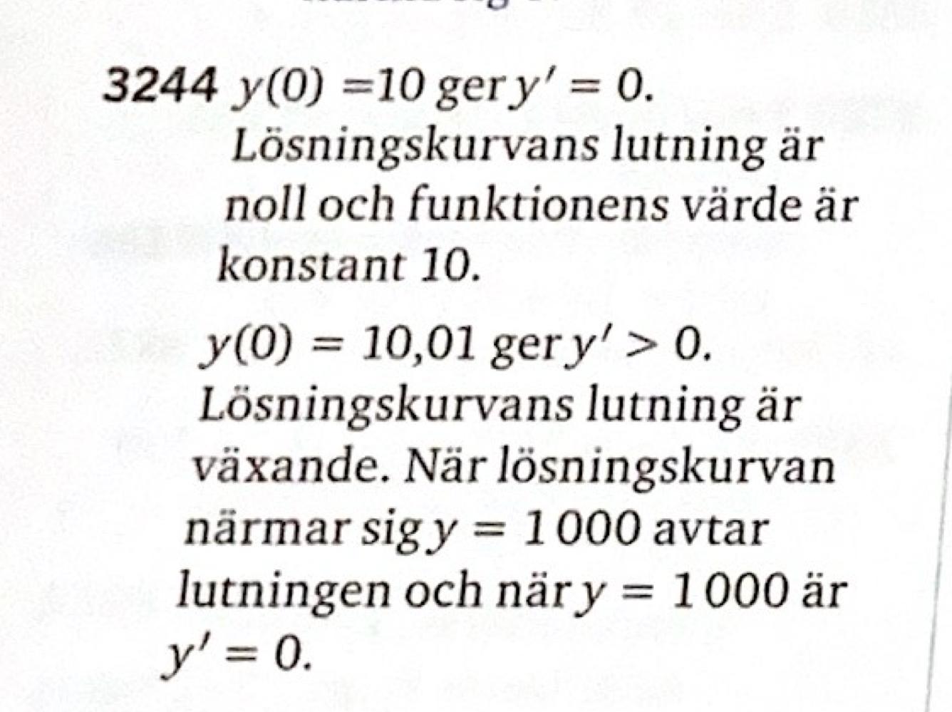 Nej, vi vet ju att y(0) = 10 så det blir y'(0) = (1-0,1y)(0,001y-1) = (1-0,1.10)(0,001.10-1) = (1-1)(0,01-1) = 0
