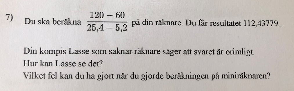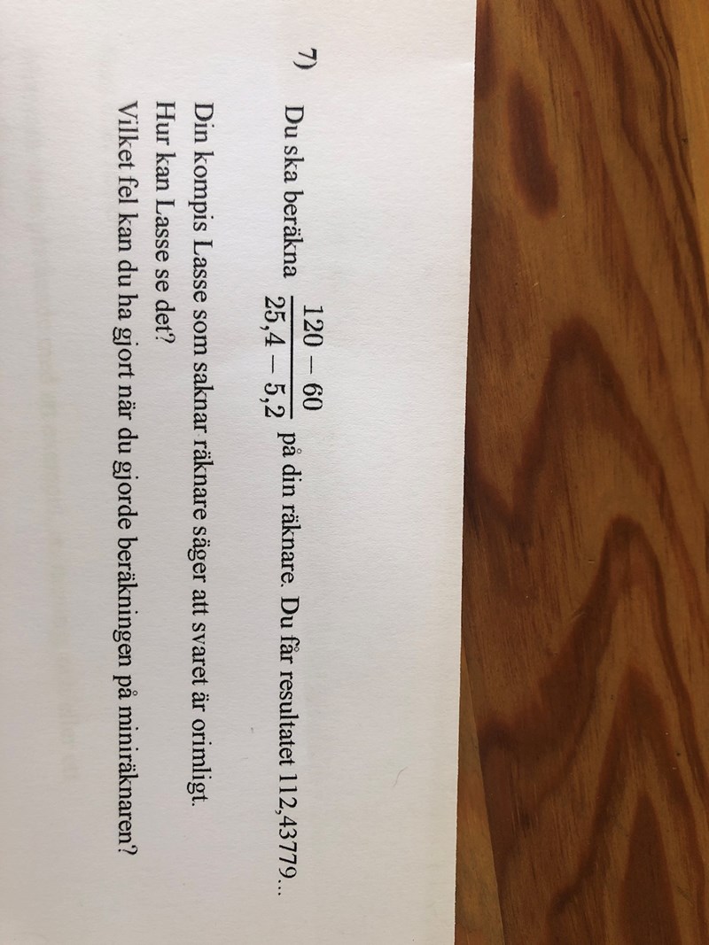 Hur ska man göra egentligen? Ska man räkna 120-60 och 25,4-5,2 först, även om de inte är i parentes? Och HUR kunde Lasse veta det? Tack 💗