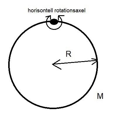 En ring är upphängd i en horisontell axel som löper genom ringens utkant, ringen kan rotera friktionsfritt i sitt vertikalplan. Den har en massa M och radie R.