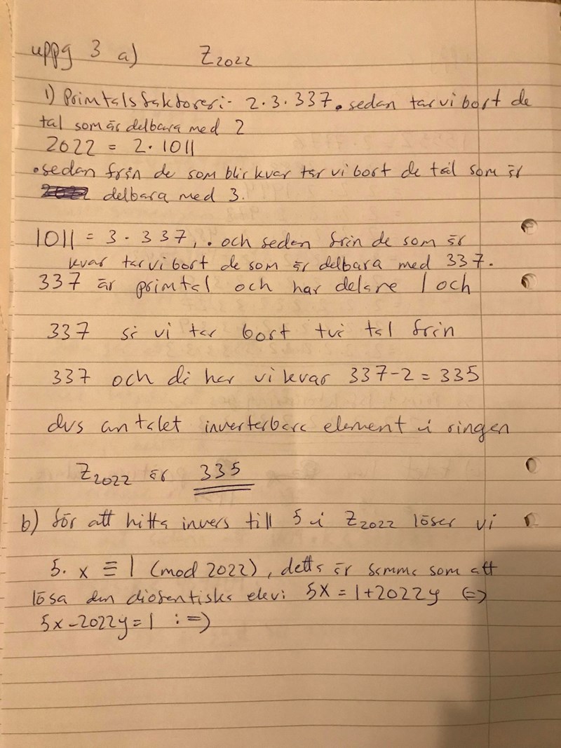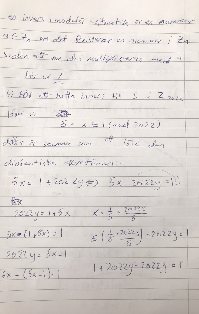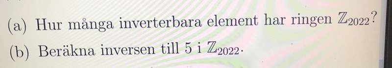 b) är korrekt men du har liksom inte skrivit vad svaret är, alltså vad är inversen till 5?