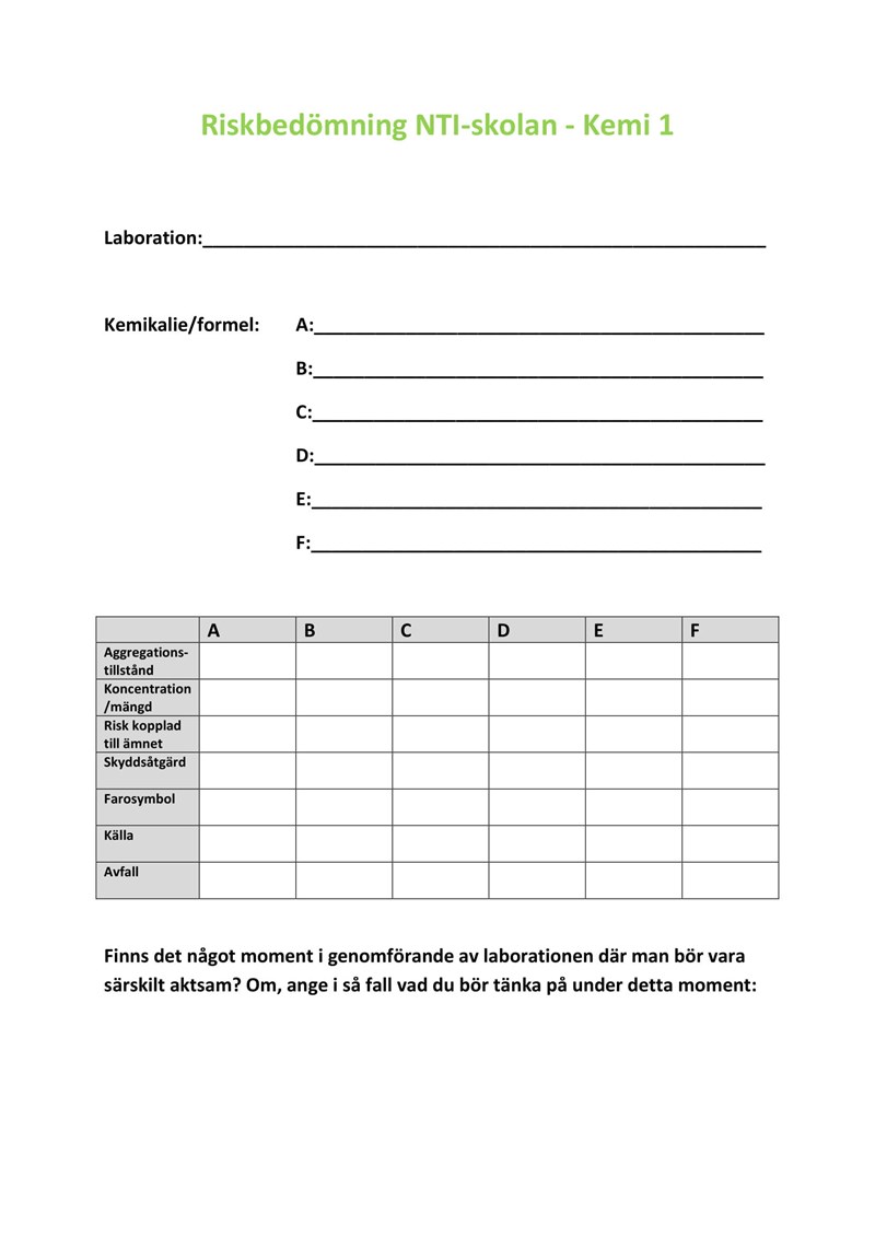 Du behöver veta vilken laboration du ska göra innan du fyller i denna.