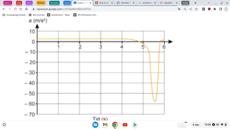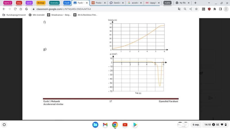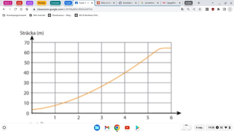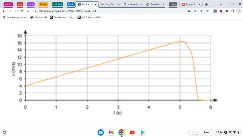 g) Man ska ta hastighet/tid för att få accelarationen , behöver hjälp med varför 0 - 1 - 2 - 3 - 4 - 5 har samma accelaratrion