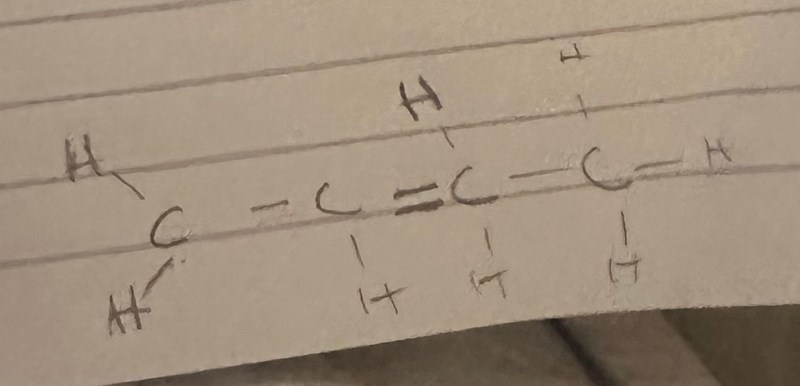 Bättre, men inte rätt! Du vet att kol (C) binder fyra. Räkna hur många bindningar du har för varje kolatom. Jag ser i alla fall två som har fel antal.