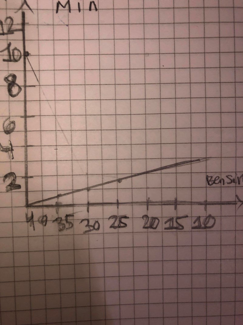 Efter att ha ritat grafen från att den i uppgiften var ”omvänd proportionalitet” till en proportonalitet så ser grafen ut så och genom den grafen kan jag konstatera att minskningen är ungefär det samma därför bör ”min skiss” vara en figur som har lika stor nedredel som övredel