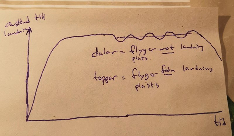 🙂🙂Just det planet går nära och ifrån, nära och ifrån landning plats. 360 grader, blir en sinus kurva. Typ.