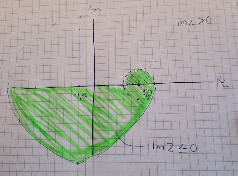 Om Im(z)≤0 är du på eller under Re-axeln och då är ett annat område aktuellt