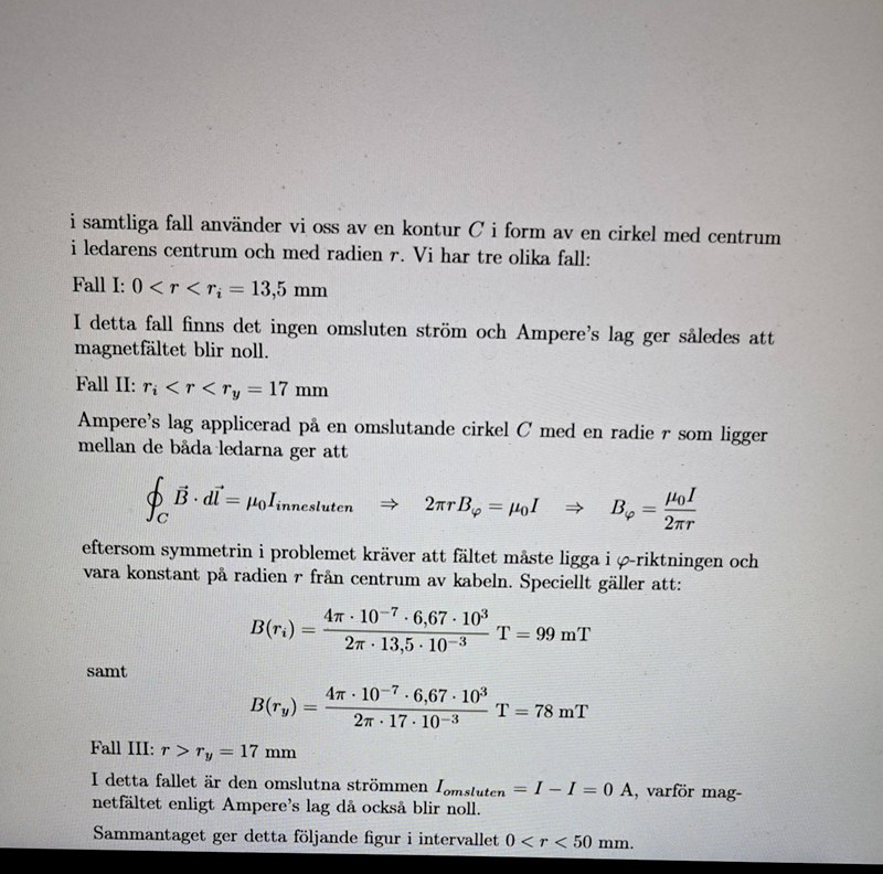 4) varför räknar man fältet hos den inre ledaren då man konstaterat att I=0 och B=0?