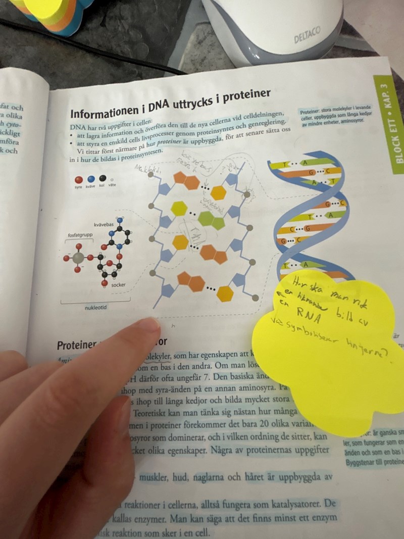 Rita en liknande bild av eb bit RNA o h förklara med ord och pilar vilka skillnader är i molekylernas byggnad. Jag undrar ifall någon kan hjälpa mig med det?