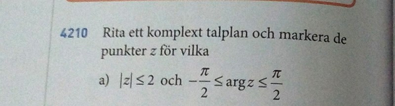 Du ska alltså skugga det/de område/n där z uppfyller villkoret att argumentet för z är större än eller lika med -90° samtidigt som det är mindre än eller lika med 90°.