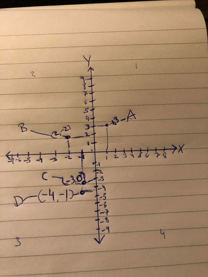 Ska B gå x axel 2 sen Y -2? C ska -3 gå minus x axel bara ? D x-4 Y-1?