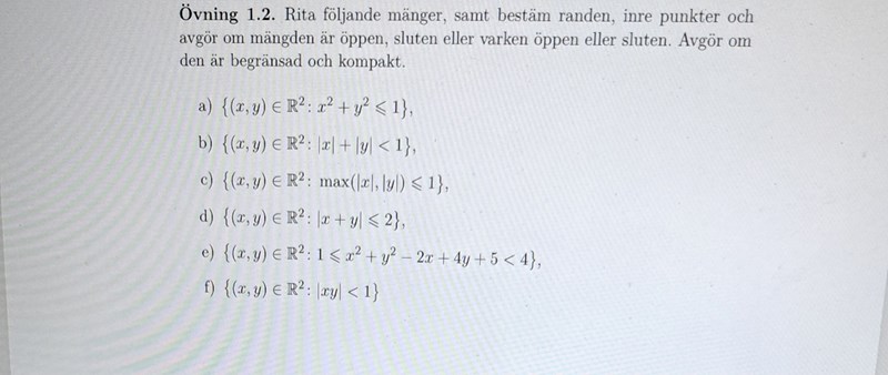 Rita följande mängd e) , avgör om mängd är öppen, sluten /begränsad eller kompakt