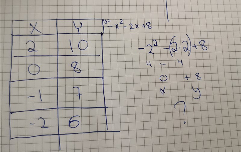 Steg 1. Börja med att göra en värdetabell med några x-värden och det beräknade y-värdet.