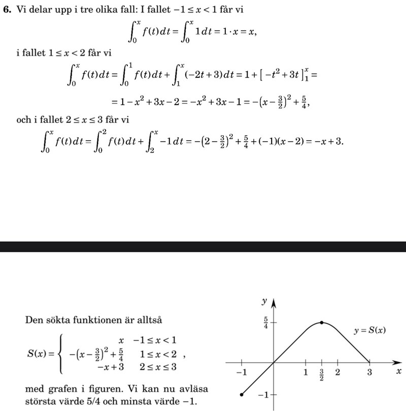 Det jag inte fattar är varför man i fallet ska ha med . I min värld så ska man göra som i fallet , dvs räkna en integral enligt följande , men det blir inte rätt. Någon som kan förklara superpedagogiskt varför intervallet inte blir 0 till X, utan två integraler med intervallen 0 till 1 och 1 till X?