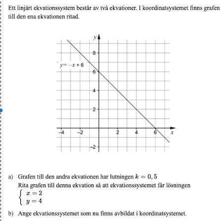 Rita grafen till denna ekvation så att ekvationssystemet får lösningen...