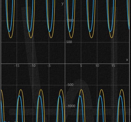Till en fysik uppgift vill jag rita en graf där kurvor y=1350/(1.8*sin x+0.1*cos x) och y=600/(sin x-0.4*cos x), korsar.
