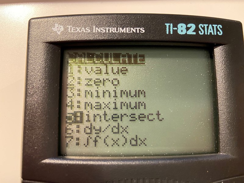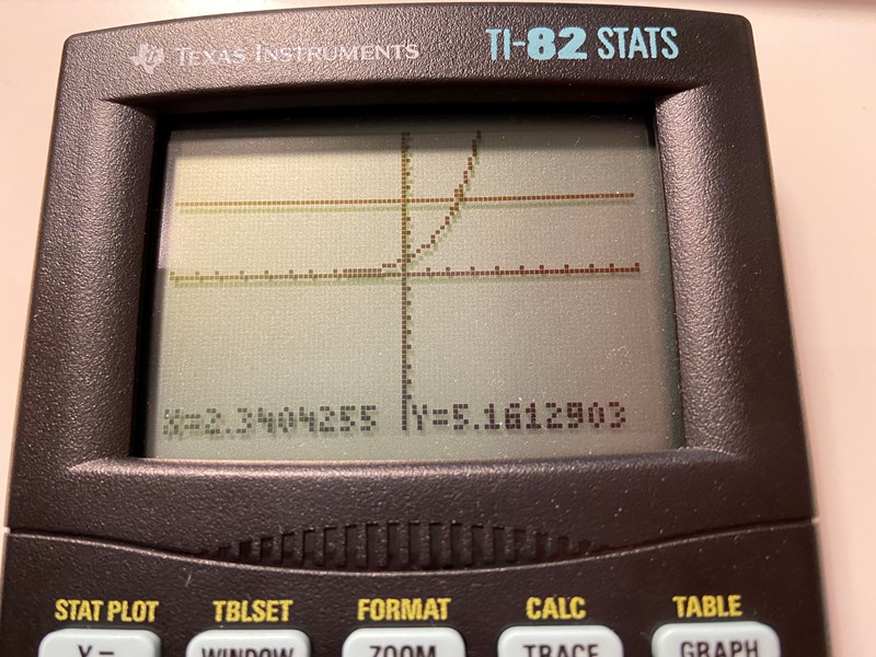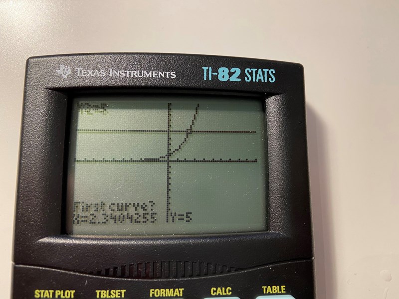 Jag väljer number 5 intersect och flyttar punkt till y=5. Det står X=2.34
