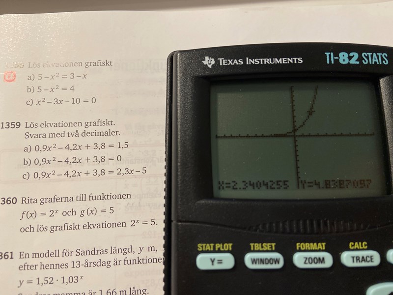 lovely99520 skrev:Jag väljer number 5 intersect och flyttar punkt till y=5. Det står X=2.34