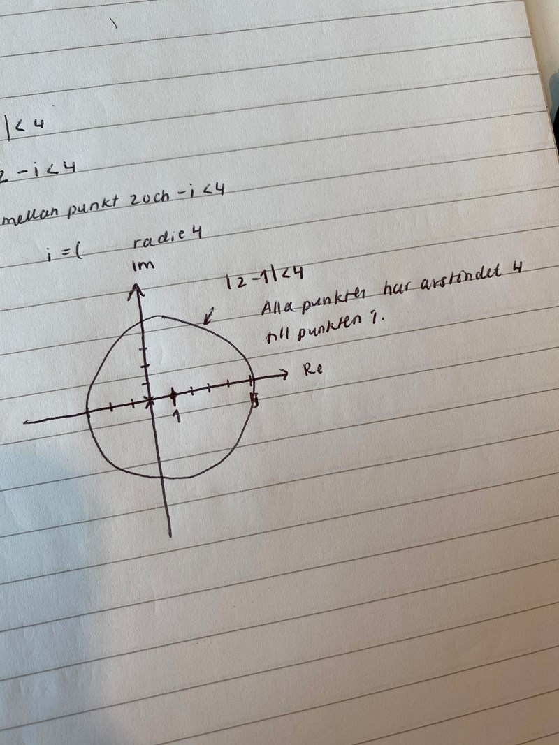 melinasde skrev:Skaft skrev:|z-1| kan tolkas som avståndet mellan talet z och talet 1. Vad beskriver då den första olikheten?