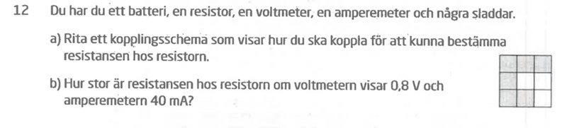 För att rita kopplingsschemat i uppgiften ska man tänka på Ohms lag U = R*I. Genom en räkneoperation blir den