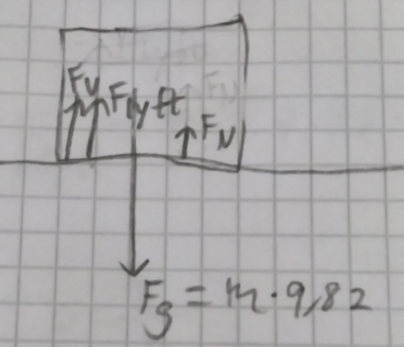Jag tänker att krafterna är vattnets lyftkraft, kranens lyftkraft, tyngdkraft och normalkraft. Men normalkraft finns inte med i facit. Varför?