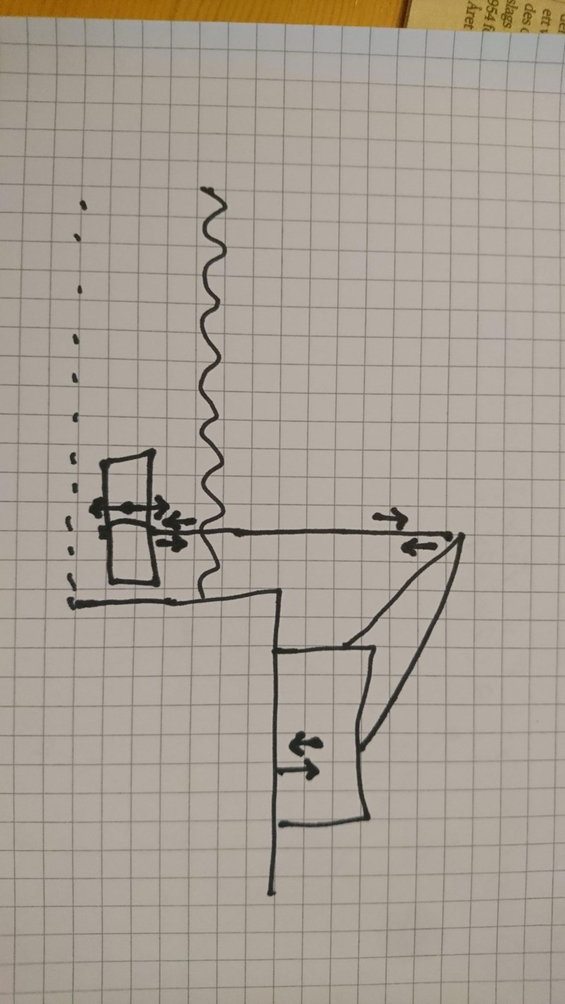 Så här blir det när jag ritar. Kranen kan förstås stå på en båt i stället, men det var ju bara krafterna på balken man ville se.
