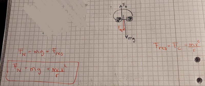 Eftersom FRes är lika med centripetalkraften FC så får vi att FN = mg - FC.